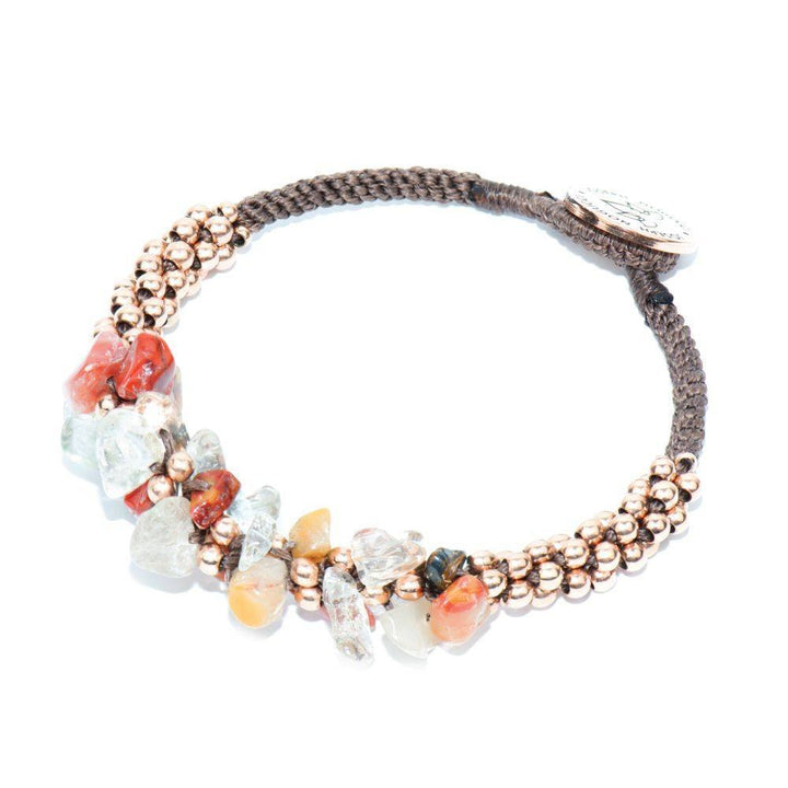 Stone: CupriteMetal: Rose Gold FinishBase: Anti-Tarnish Stainless SteelCord: Brown Nylon Size Length: 20cm | 7 7/8"Diameter: 5.5cm | 2 1/8" Designed as a tribute to the raw aesthetic brilliance found...