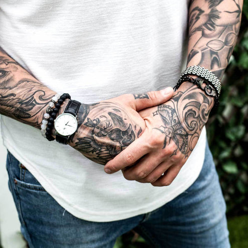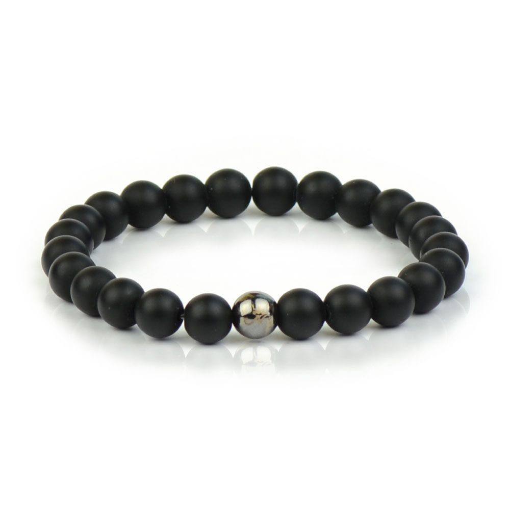 The Rock Steady bracelets are hand-crafted from 8mm natural stone beads. Each bracelet is accented with a silver, gold, rhodium, or gunmetal plated bead laser engraved with the JN logo. Hand-strung on a nylon cord, the Rock Steady bracelets have an un-stretched inner diameter of 2 inches / 5.1cm. One size fits most.