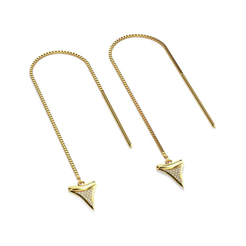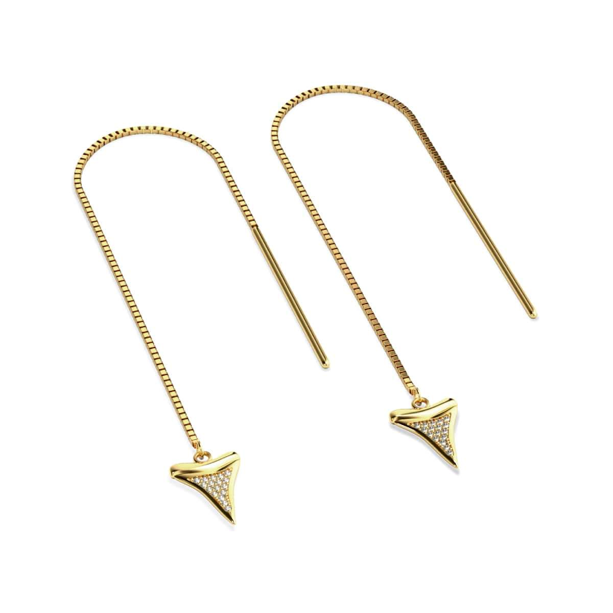 SHARK TOOTH CHAIN DROP THREADER EARRINGS BY LAUREN HOWE | .925 STERLING GOLD VERMEIL | CRYSTAL