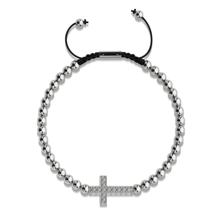 Metal Finish: Silver Bead Size: 4mm Cord: Adjustable Woven Nylon Metal Base: Stainless Steel The Crystal Cross Charmballa bracelets are hand-crafted from 4mm beads and are hand-strung on an adjustable woven...