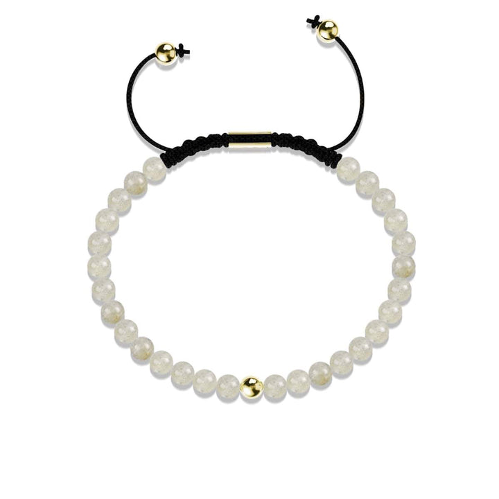 Vermeil: 18k White Gold Base: .925 Sterling Silver Focus Gemstone: Rose Quartz Bead Size: 4mm Cord: Woven Nylon The Focus Gemstone bead bracelets are hand-crafted from 4mm gemstone beads and...