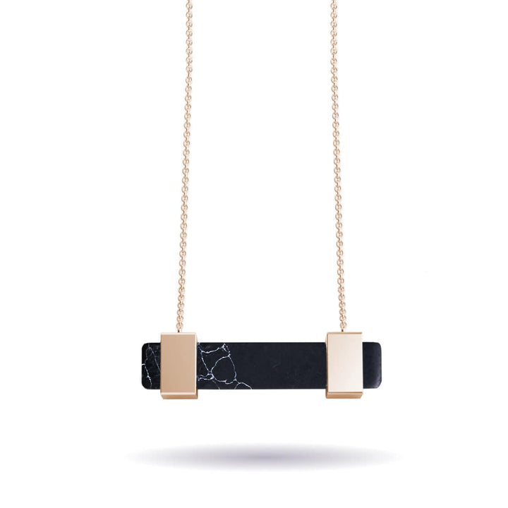 Stone: Black Agate Finish: Rose Gold Chain Length: 18" Base: Stainless Steel The Gemstone Bar Necklaces are crafted from natural gemstones and feature an 18" chain finished in either silver,...