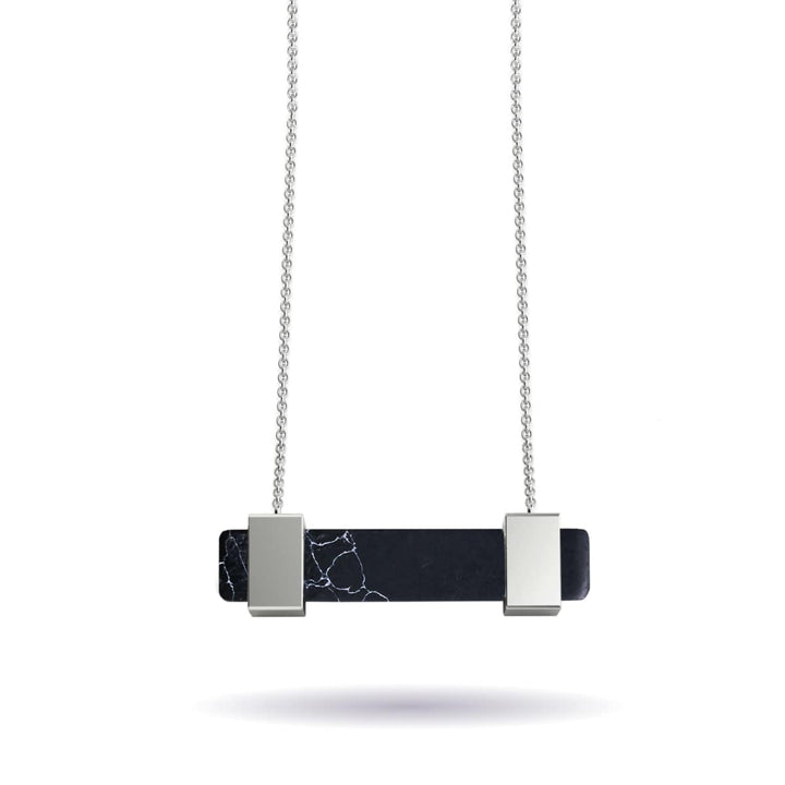 Stone: Black Agate Finish: Silver Chain Length: 18" Base: Stainless Steel The Gemstone Bar Necklaces are crafted from natural gemstones and feature an 18" chain finished in either silver, gold,...