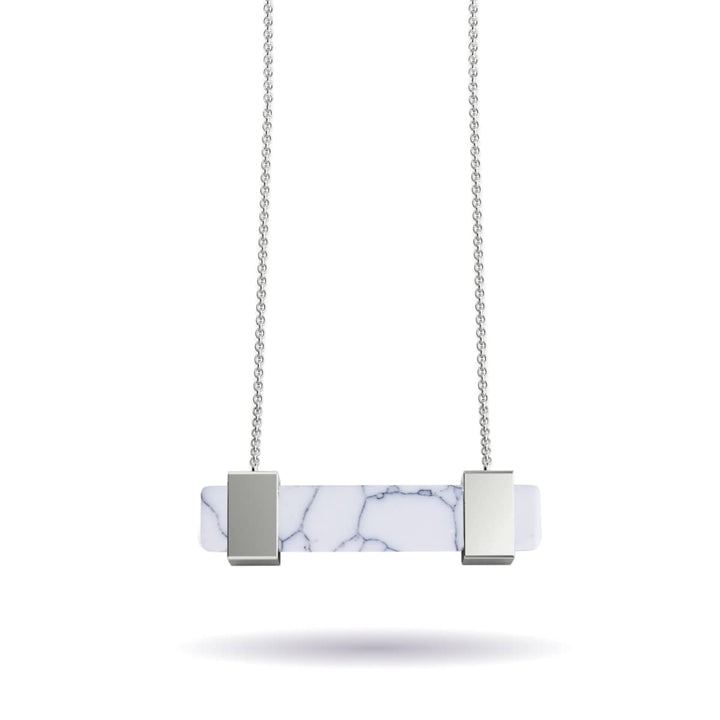 Stone: Howlite Finish: Silver Chain Length: 18" Base: Stainless Steel The Gemstone Bar Necklaces are crafted from natural gemstones and feature an 18" chain finished in either silver, gold, or...