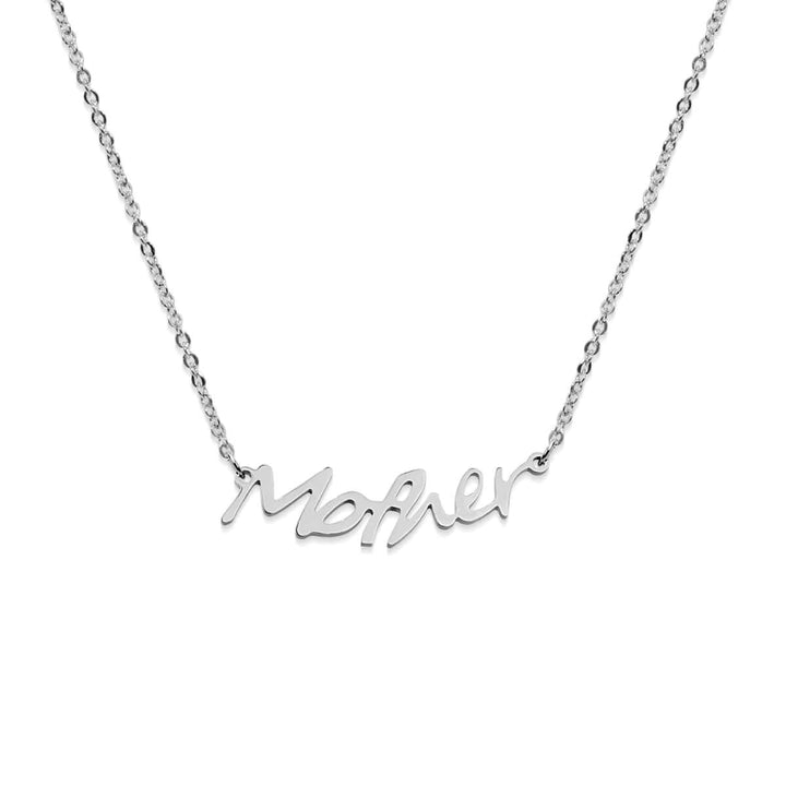 FREE Gift Box Metal Finish: SilverMetal Base: Stainless SteelLettering: MotherLength: 9" The NOGU Mother necklace is crafted from silver finished stainless steel and hung on a matching 9" chain.