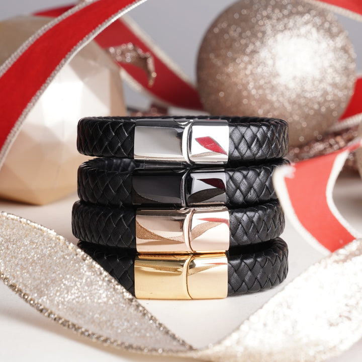 Charity: 100% Of Net Sales Donated to St Joseph's Health Center Metal Finish: Gunmetal Metal Base: Stainless Steel Leather Width: 12mm Leather Length: 7.5" or 8.3" This Limited Edition Bracelet is...