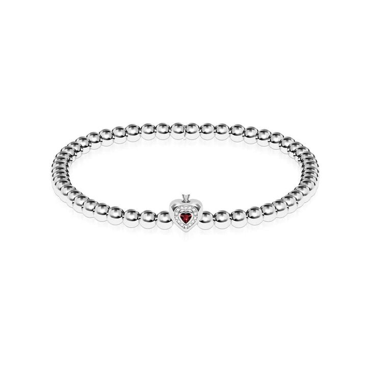 Charity 5% of net sales donated to Heart & Stroke Foundation Base: Stainless Steel & Copper Finish: Silver Birthstone: Garnet Bead Size: 4mm Cord: Clear Elastic The Crystal Heart bracelets...