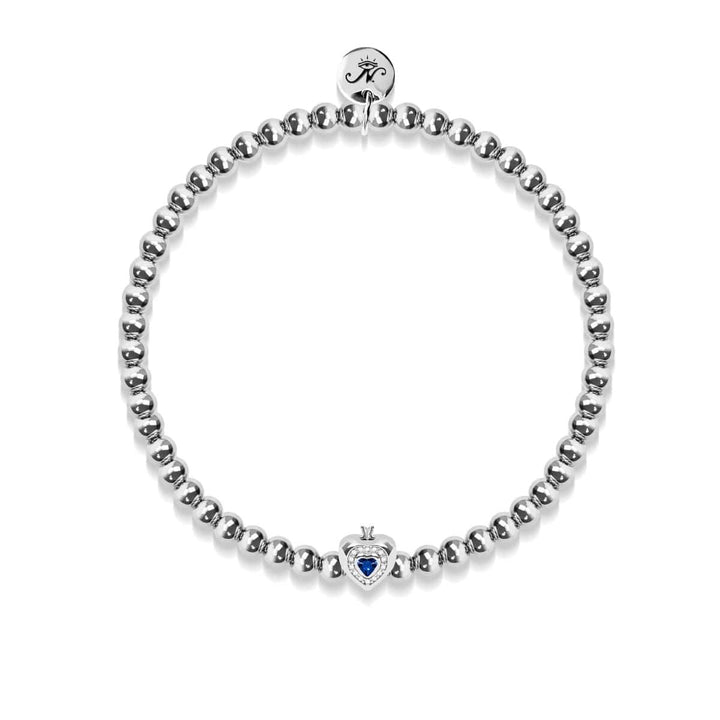 Charity 5% of net sales donated to Heart & Stroke Foundation Base: Stainless Steel & Copper Finish: Silver Birthstone: Sapphire Crystal Bead Size: 4mm Cord: Clear Elastic The Crystal Heart...