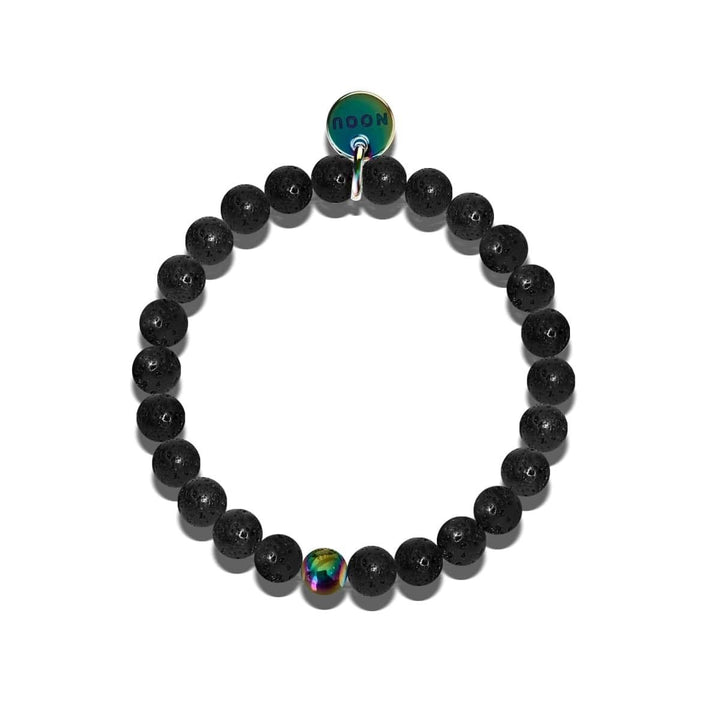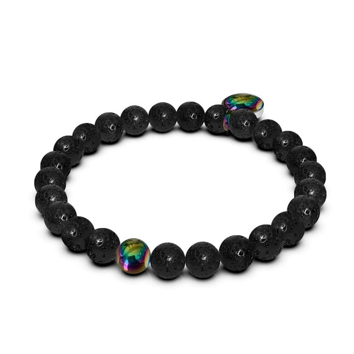 Finish: Unicorn Silver Beads: Black Lava Rock Bead Size: 8mm Base: Stainless Steel Cord: Clear Elastic Named for the famed Mount Etna in Italy, the Etna bracelet is hand-crafted from...