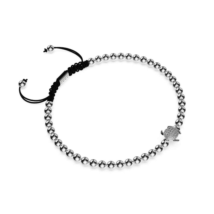 Crystals: CZ Diamond Pavé Inlaid Gilded Finish: Silver Base: Stainless Steel & Brass Adjustable Woven Nylon Color: Black Bead Size: 6mm T'is the season to sparkle! Our CZ Crystal Collection has been...