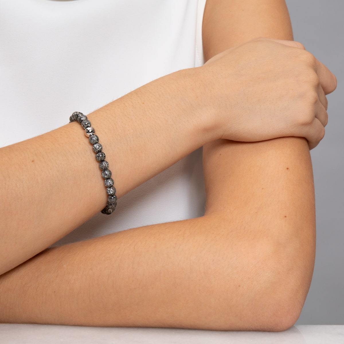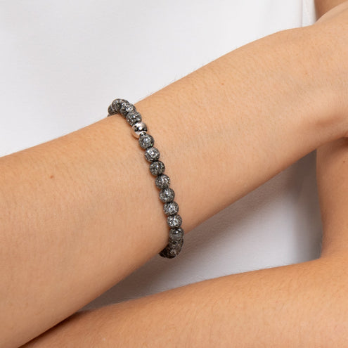 CHARCOAL | .925 STERLING SILVER | GLITTER GLASS BEAD BRACELET