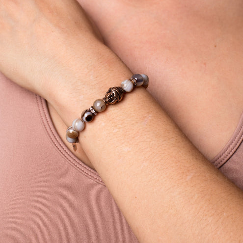 SENSEI | ROSE GOLD BUDDHA | LIGHT BROWN FACETED AGATE BRACELET