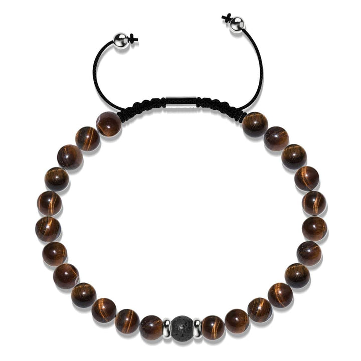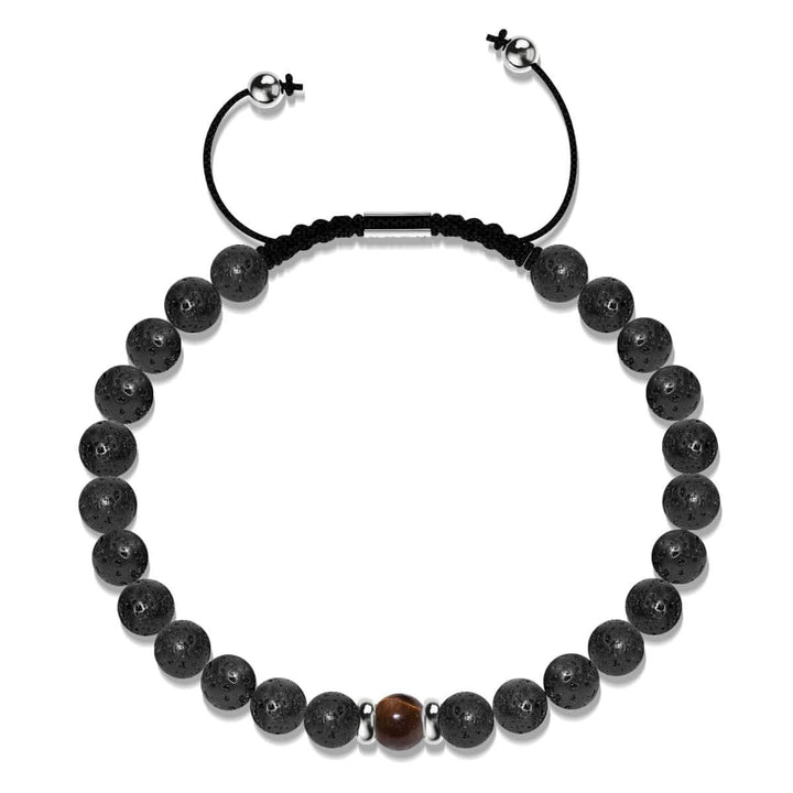 Stones: Tiger Eye & Black Lava Rock Vermeil: 18k White Gold Base: .925 Sterling Silver Bead Size: 6mm Cord: Adjustable Nylon Two halves of the same whole, the bracelets of...