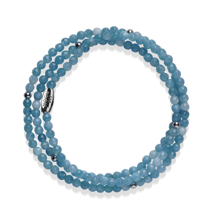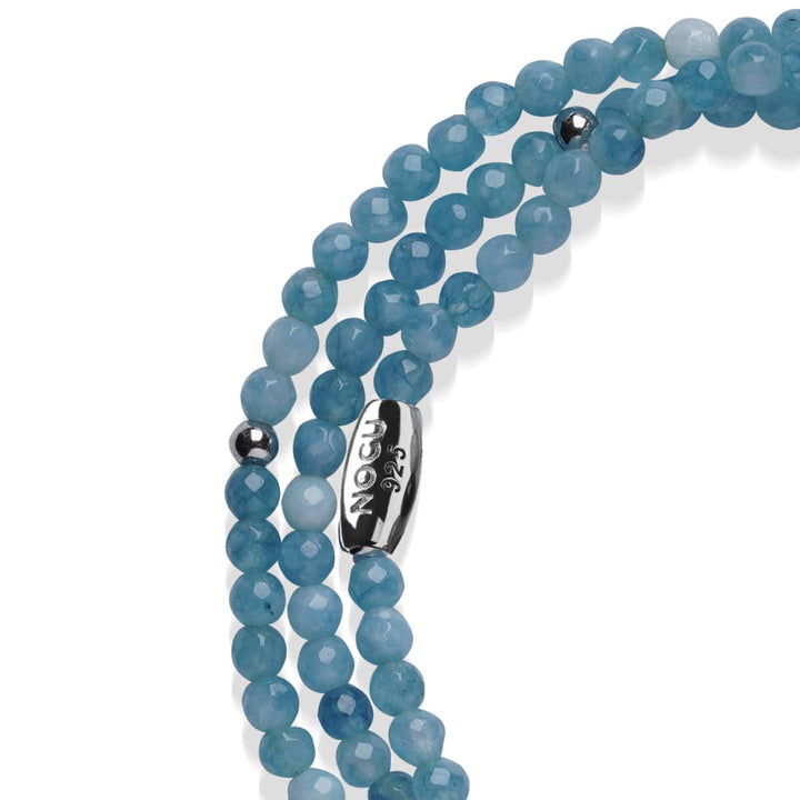 Vermeil: 18k White Gold Base: .925 Sterling Silver Gemstone: Aqua Jade Bead Size: 3mm - 3.5mm Length: 21 inches WISDOM + PEACE Jade, a stone most well known in iconic tones...