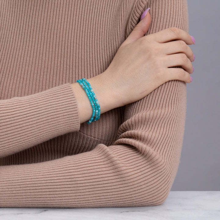 Finish: Unicorn Silver Base: Stainless Steel Beads: Sea Stone Gemstones Bead Size: 6mm Cord: Clear Elastic The Gemstone Expression bead bracelets are hand-crafted from 6mm gemstone beads and are hand-strung on a...