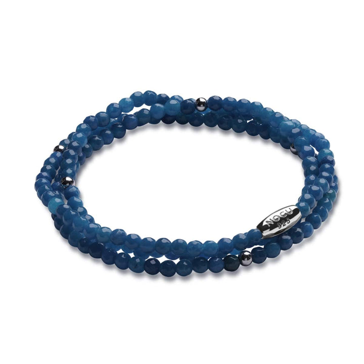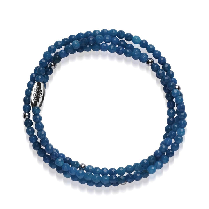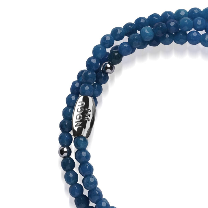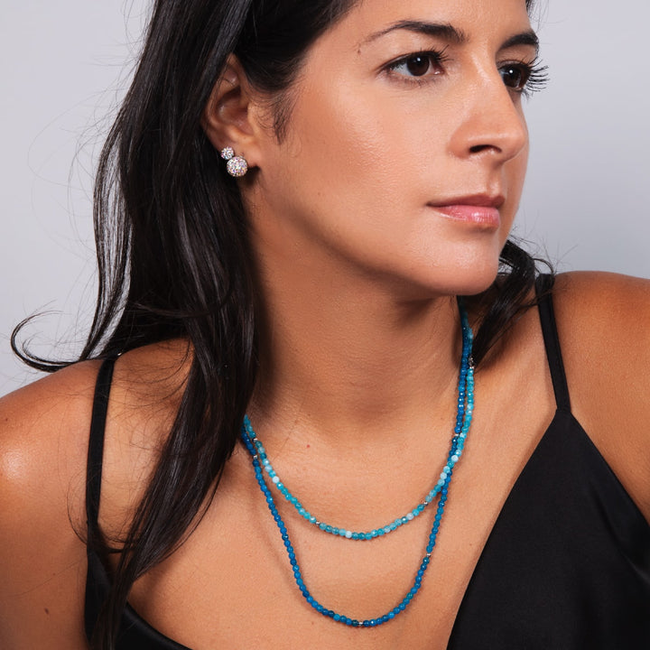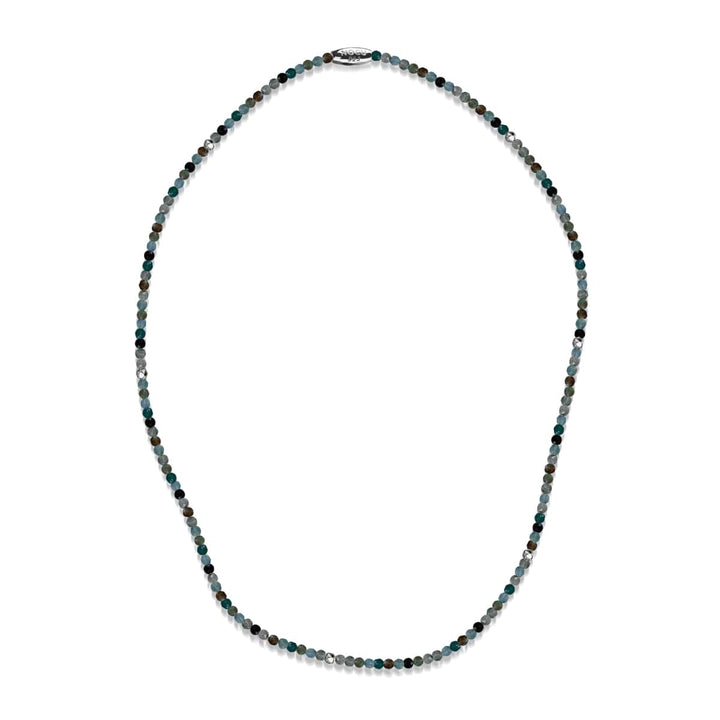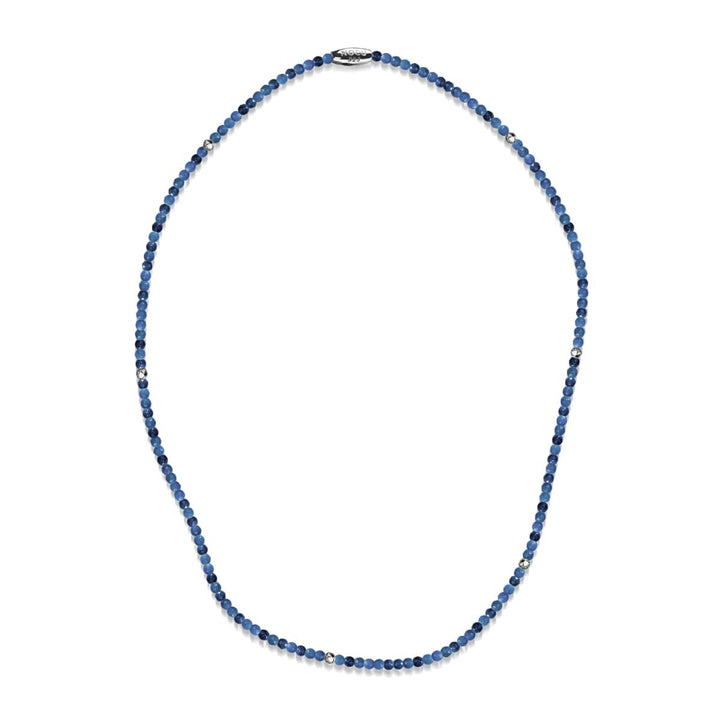 Vermeil: 18k White Gold Base: .925 Sterling Silver Gemstone: Blue Agate Bead Size: 3mm - 3.5mm Length: 21 inches ENERGY + BALANCE Among healing stones, agate is known for its balancing properties...