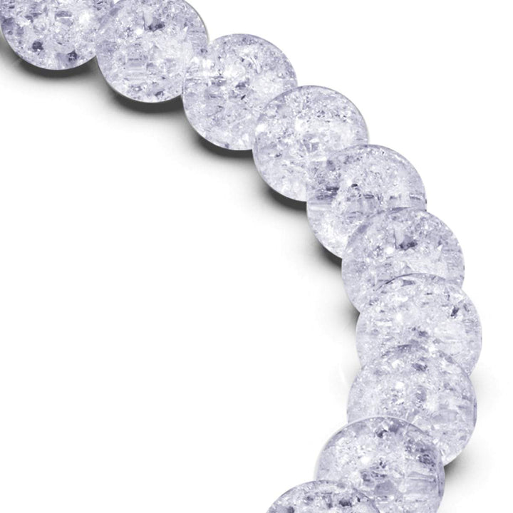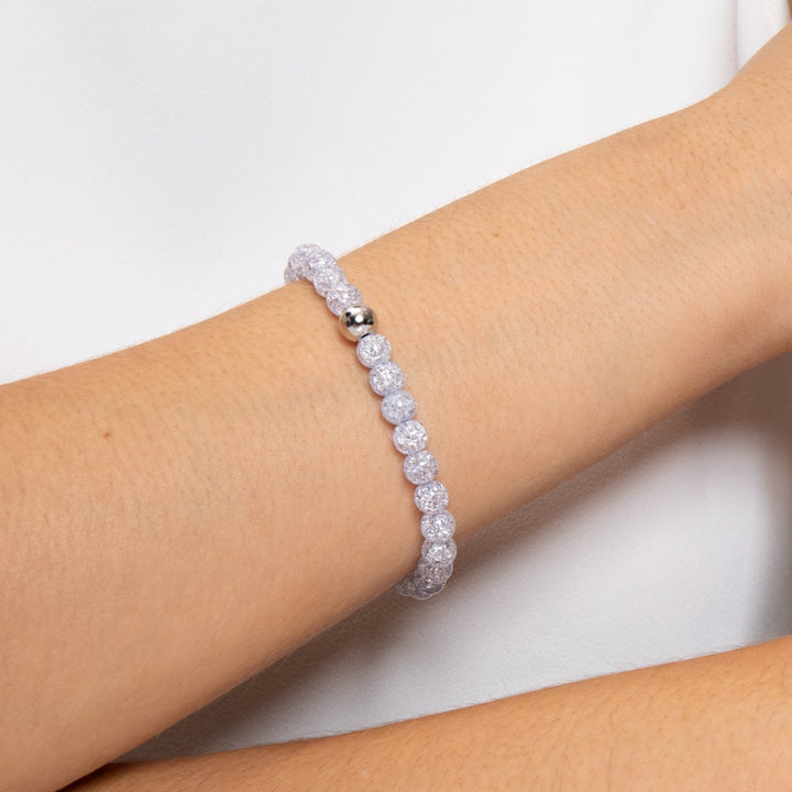 Vermeil: 18k White Gold Beads: Blue Glitter Glass™ Bead Size: 6mm Cord: Clear Elastic Base: .925 Sterling Silver The Frozen Glitter Glass bead bracelets are hand-crafted from blue 6mm glitter glass...