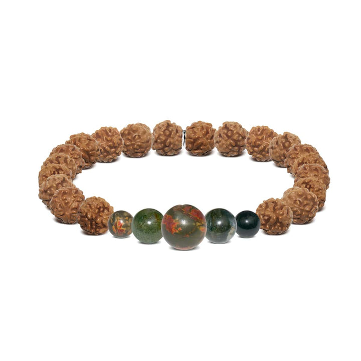 FREE Suede Polishing Gift Pouch Bead: Organic Rudraksha Prayer Seeds (8mm) Stone: Waterweeds Agate Metal: Silver Finish Base: Laurelian Stainless Steel Cord: Clear Stretch Size: One Size Fits Most THIS PRODUCT...
