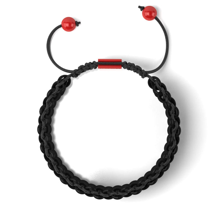 Charity 5% of net sales donated to Heart & Stroke Foundation Gilded Finish: Gunmetal and Red Enamel Base: Stainless Steel Adjustable Woven Nylon Color: White POWER | INTELLECT | DESTINY...