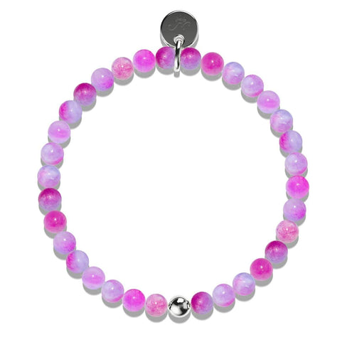 The Healing Gemstone bead bracelets are hand-crafted from 6mm gemstone beads and are hand-strung on a clear elastic cord. The Healing Gemstone bracelets are available in a wide range of brilliantly patterned natural gemstone beads and a .925 sterling silver centerpiece in 18k white or 18k yellow gold vermeil. Each bracelet includes a matching .925 sterling silver logo charm. With their stretchable clear elastic cord, the bracelets are one-size-fits-most.
