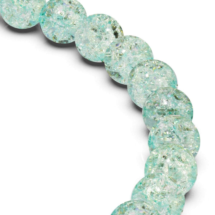 Vermeil: 18k White Gold Beads: Blue Glitter Glass™ Bead Size: 6mm Cord: Clear Elastic Base: .925 Sterling Silver The Frozen Glitter Glass bead bracelets are hand-crafted from blue 6mm glitter glass...