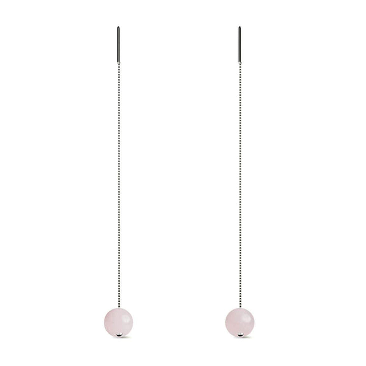 Vermeil: 18k White GoldBeads: Rose Quartz GemstonesStud Size: 10mmBase: .925 Sterling SilverThe .925 Sterling Silver and Gemstone Chain Drop Threader earrings are hand-crafted from 10mm natural gemstone beads and set...