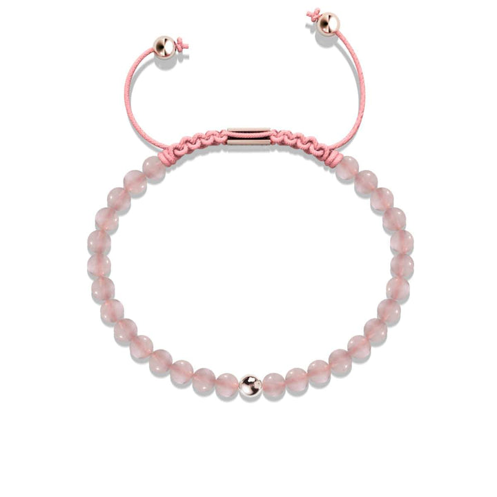 Vermeil: 18k Rose Gold Base: .925 Sterling Silver Focus Gemstone: Rose Quartz Bead Size: 4mm Cord: Woven Nylon The Focus Gemstone bead bracelets are hand-crafted from 4mm gemstone beads and...