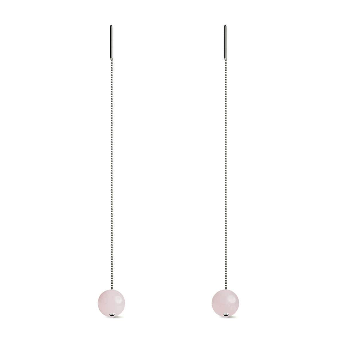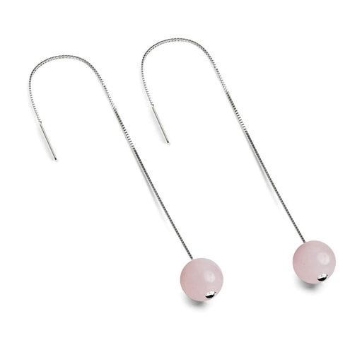 The .925 Sterling Silver and Gemstone Chain Drop Threader earrings are hand-crafted from 10mm natural gemstone beads and set on a sterling silver stud. The Natural Gemstone earrings are available in a wide array of naturally hued and intricately patterned gemstones in a stunning array of colors and have a solid .925 sterling silver backing with an 18k white gold vermeil.