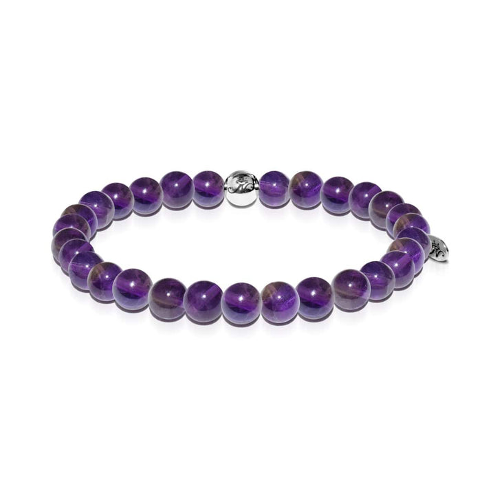 FREE Suede Polishing Gift Pouch Stone: Amethyst Metal: Polished Stainless Steel Cord: Clear Elastic Size: 7 1/3"/ 18.5cm, Circumference , Unstretched The Leadership Silver Essence Bracelet is crafted from Amethyst. The Essence of Amethyst...