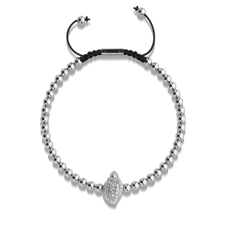 Finish: Silver Crystals: Austrian Crystals Bead Size: 4mm Cord: Adjustable Nylon Base: Stainless Steel The Crystal Conch Shell charmballa bracelets are hand-crafted from 4mm beads and are hand-strung on a...