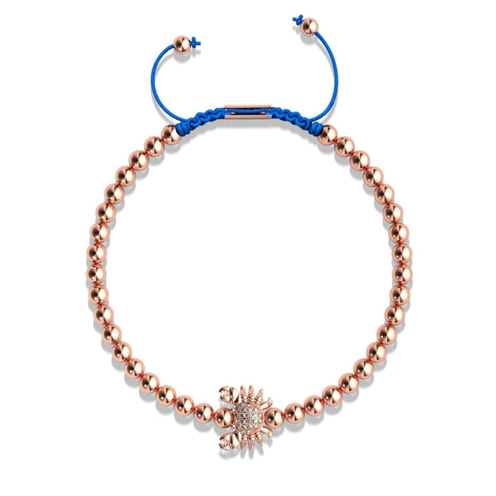 Metal Finish: 18k Rose Gold Bead Size: 4mm Crystals: Austrian Crystals Cord: Adjustable Woven Nylon Metal Base: Stainless Steel The Crystal Sea Crab Charmballa bracelets are hand-crafted from 4mm beads...
