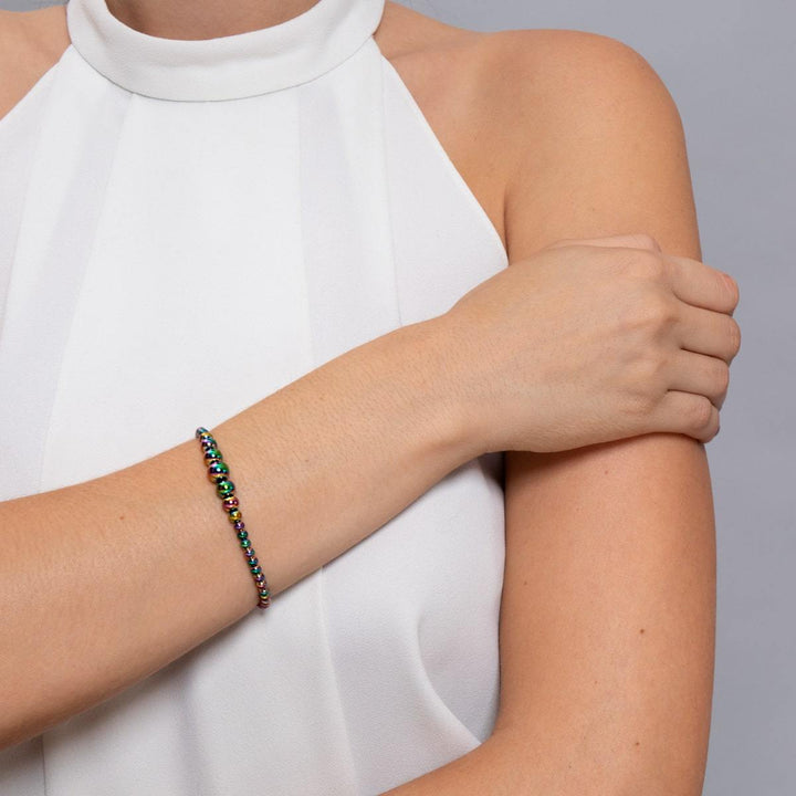 Base: Stainless Steel Finish: Unicorn Silver ™ Beads: Stainless Steel Bead Size: 6mm / 8mm Cord: Clear Elastic The Expression bracelets are hand-crafted from 6mm beads and are hand-strung on a clear...