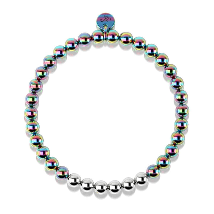 Base: Stainless Steel Primary Finish: 18k Rose Gold Secondary Finish: Unicorn Silver ™ Bead Size: 6mm Cord: Clear Elastic The Expression bracelets are hand-crafted from 6mm beads and are hand-strung on a...