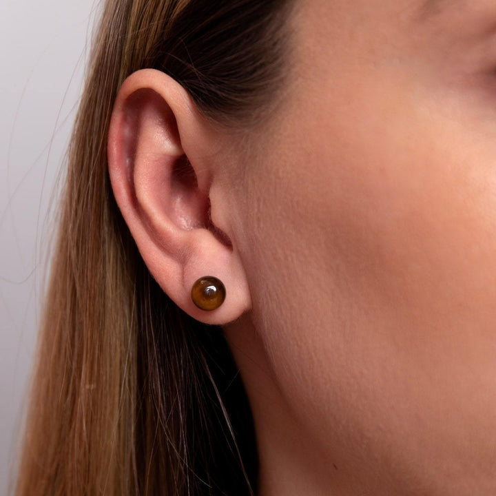 Vermeil: 18k White GoldBeads: Authentic Natural GemstonesStud Size: 8mmBase: .925 Sterling SilverThe .925 Sterling Silver & Natural Gemstone stud earrings are hand-crafted from 8mm natural gemstone beads and set on a sterling...