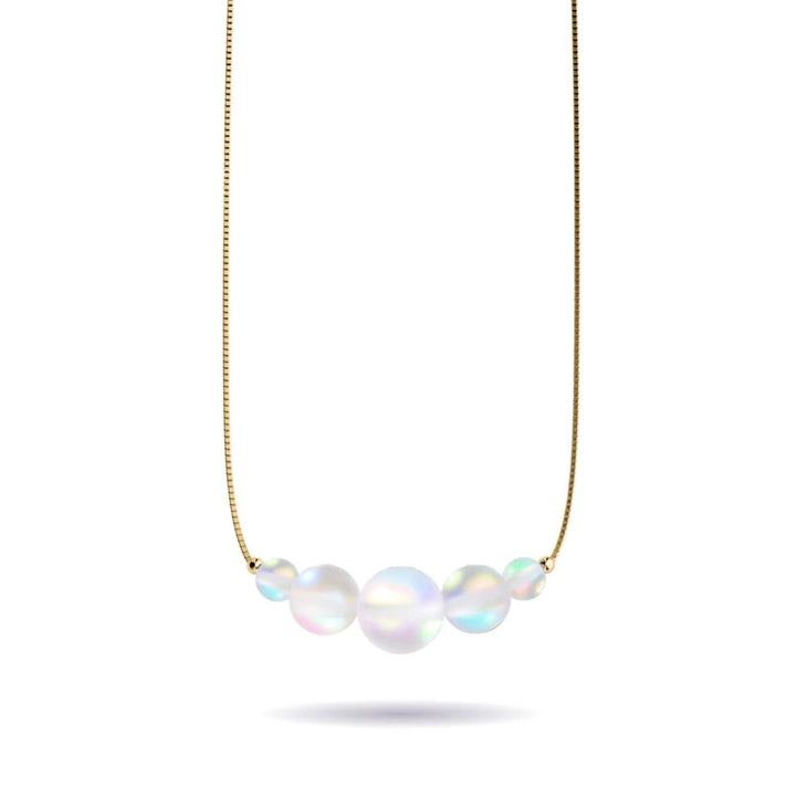 Vermeil: 18k White Gold Base: .925 Sterling Silver Healing Gemstone: Opal Moonstone (Opalite) Bead Size: 3mm - 3.5mm Length: 21 inches FORTUNE + GROWTH Opal Moonstone is a stone known to act...