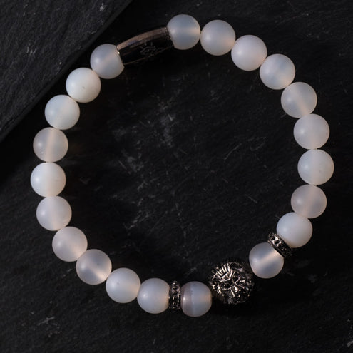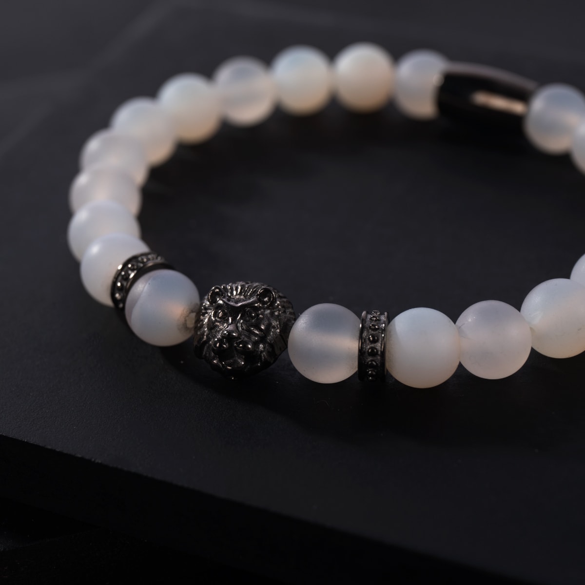 The Kingdom Bead bracelets are hand-crafted from 8mm beads and are hand-strung on a clear elastic cord. The Kingdom Bead bracelets are available in powerful combinations of silver, gold, rose gold, or black gunmetal lion and crown charms and a striking variety of natural semi-precious stone beads. Each Kingdom Bead bracelet comes with a matching silver, gold, or rose gold plated stainless steel logo charm. With their stretchable clear elastic cord, the Kingdom Bead bracelets are one-size-fits-most.