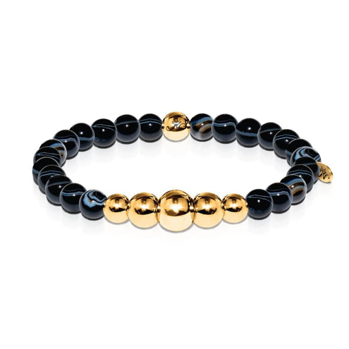 MEN'S | 18K GOLD | TEMPLE | BLACK LINE AGATE BEAD BRACELET
