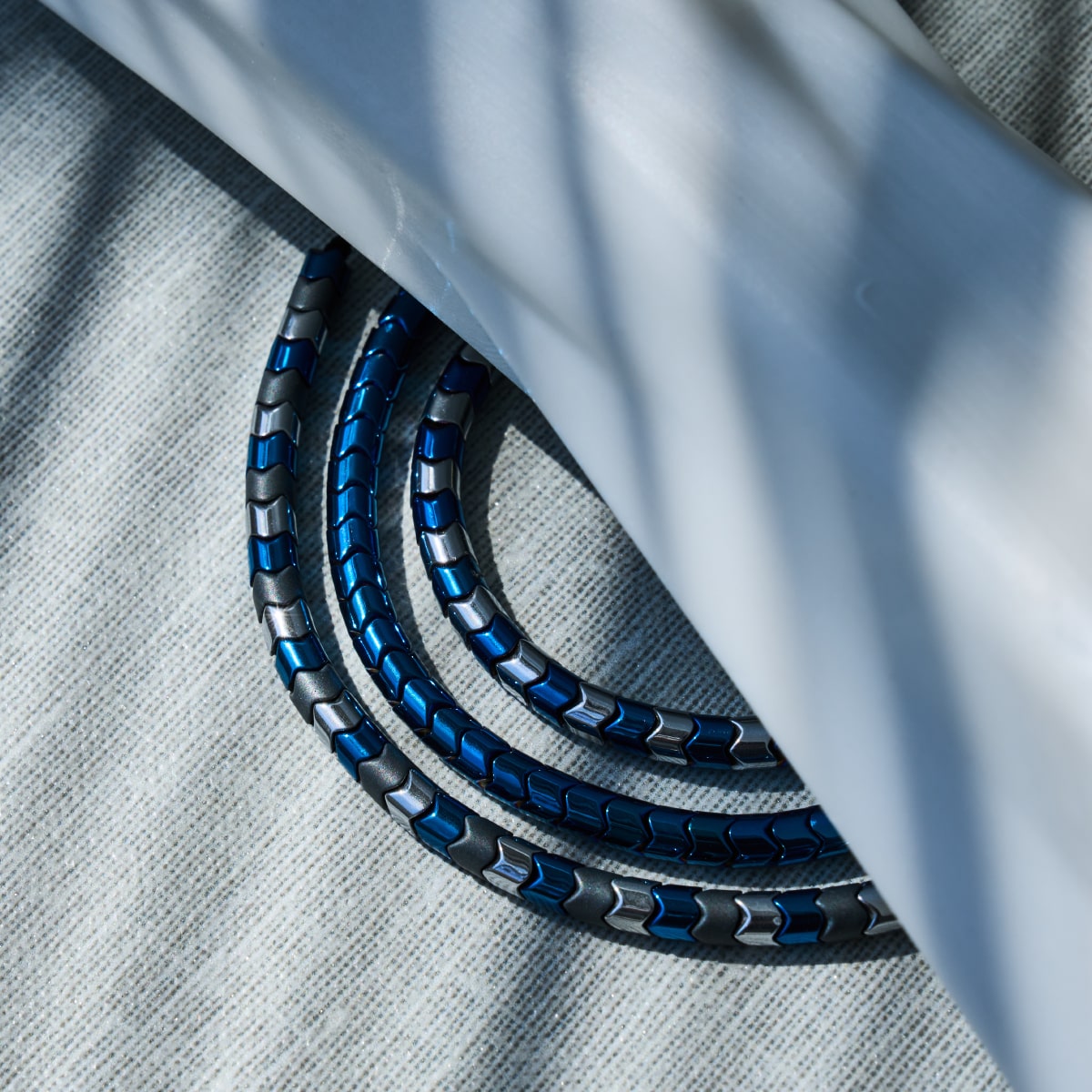 SERPENTINE | BLUE HEMATITE X GUNMETAL | WAVE BRACELET