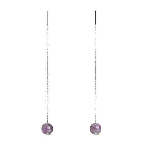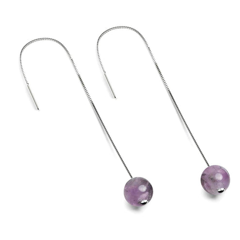 The .925 Sterling Silver and Gemstone Chain Drop Threader earrings are hand-crafted from 10mm natural gemstone beads and set on a sterling silver stud. The Natural Gemstone earrings are available in a wide array of naturally hued and intricately patterned gemstones in a stunning array of colors and have a solid .925 sterling silver backing with an 18k white gold vermeil.