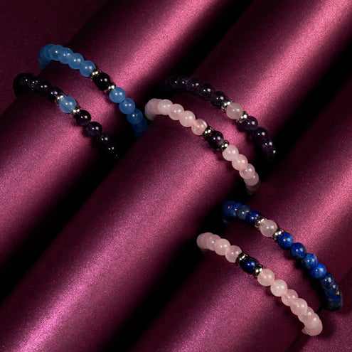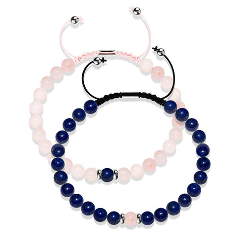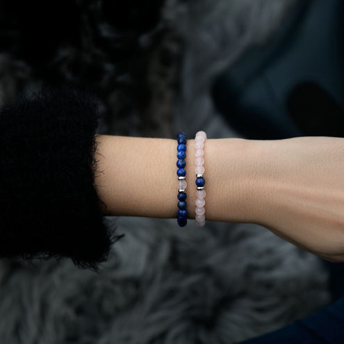 LAPIS & ROSE QUARTZ | SOULMATE BEAD BRACELET SET | .925 STERLING SILVER